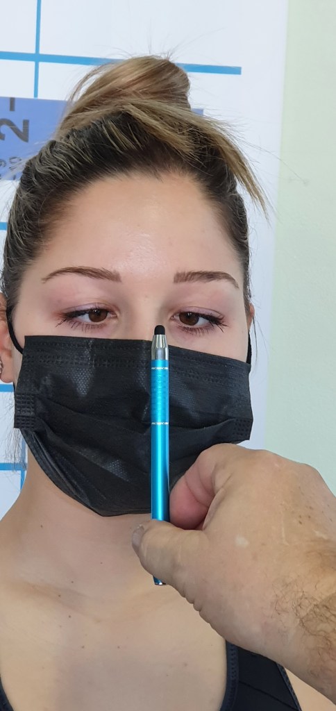 Inizio dell’ esame della postura, tutto il materiale è prontoMisurazione con il filo a piombo sulla posizione sagitale (sul fianco)Controllo dell’ alineamento delle spalle tramite lunghezza bracciaControllo del livello bacinoControllo allineamento piano scapolareControllo allineamento gluteo rispetto ai polpacciControllo allineamento gluteo rispetto ai talloniControllo lunghezza gambe guardando il livello sul piano gluteoControllo del varismo / valgismo dei piediControllo del varismo / valgismo dei piediVerifica dell’ occhio dominante da lontanoVerifica dell’ occhio dominante da vicinoVerifica dell’ occhio dominante da vicinoVerifica dell’ occhio dominante da vicinoControllo avanzando fino alla radice del naso se c’ è un errore nella convergenzaControllo avanzando fino alla radice del naso se c’ è un errore nella convergenzaControllo avanzando fino alla radice del naso se c’ è un errore nella convergenzaTest RombergTest Fukulda, marciare 30 volte sul postoControllo della masticazioneControllo nella chiusuraControllo nella chiusuraControllo sulle suole Staticure del dott. Bernard BricotSulle suole del Dott. Bernard Bricot, fare una buona ginnastica visiva con il terapista e ripetere tutti i controlli e verificare le posizioniQui si vede che nel visionare la punta della penna alla radice del naso, l’ occhio sinistro non riesce a convergere come il destro.La prima in alto, buona convergenza, la seconda occhio sinistro che non converge e la terza foto occhio destro che non converge e il sinistro non benissimo, questa terza può ma non è una regola dire che la persona ha l’ occhio dominante sinistro.Qui si vede a sinistra l’ immagine della torsione del bacino che non è allineato con i talloni, a destra invece dopo una correzione posturale, la torsione si è corretta. Questo grazie alla suole Staticure.Dicono che le suole del Dott. Bernard Bricot fanno crescere, qui a sinistra prima della correzione posturale e a destra dopo qualche mese.Come si può vedere correzione delle gambe